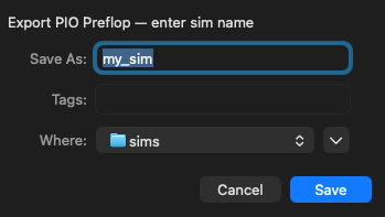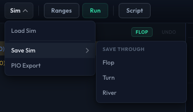PIO Export is available whenever you have solver data (either from a fresh solve or a loaded sim). It exports the preflop strategies for all positions.