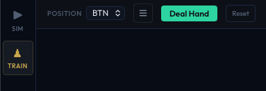 Before you can use the trainer, you need a completed solve. The trainer reads the solved strategy data to know the correct play for every hand and every decision point in the tree. If you haven't run a solve yet, see the solver settings and running the solver pages.